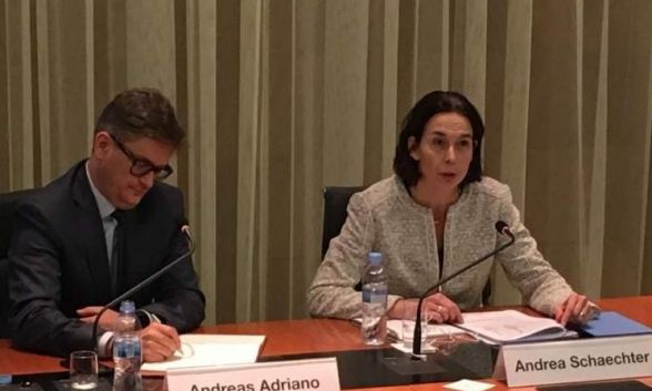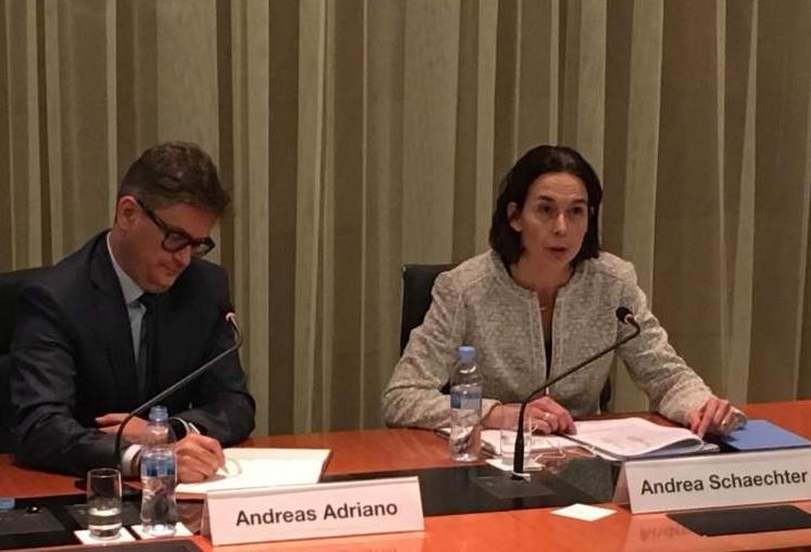 Andrea Schaechter, la jefa de la misión del FMI para España, y el portavoz del organismo,