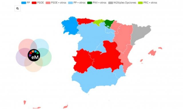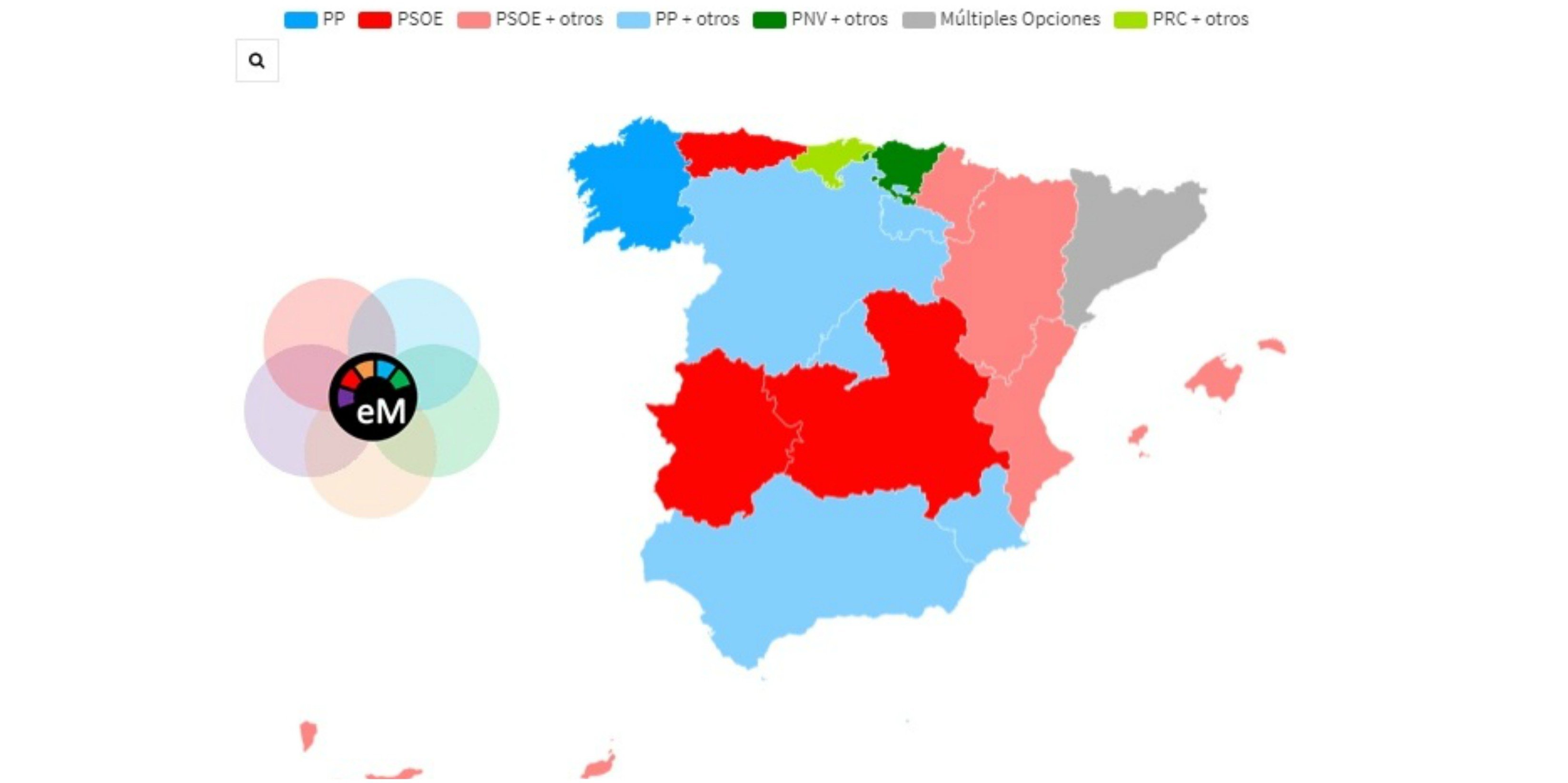La web electomania ha elaborado un sondeo que muestra un macropanel autonómico con una combinación de gobiernos más probables que liderarían cada comunidad autónoma de celebrarse unas elecciones.