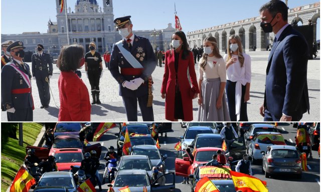 Pero, al parecer, la gente, que no pudo disfrutar del desfile militar propio de esta fiesta, estaba en la calle, manifestándose en automóvil por las principales ciudades españolas.