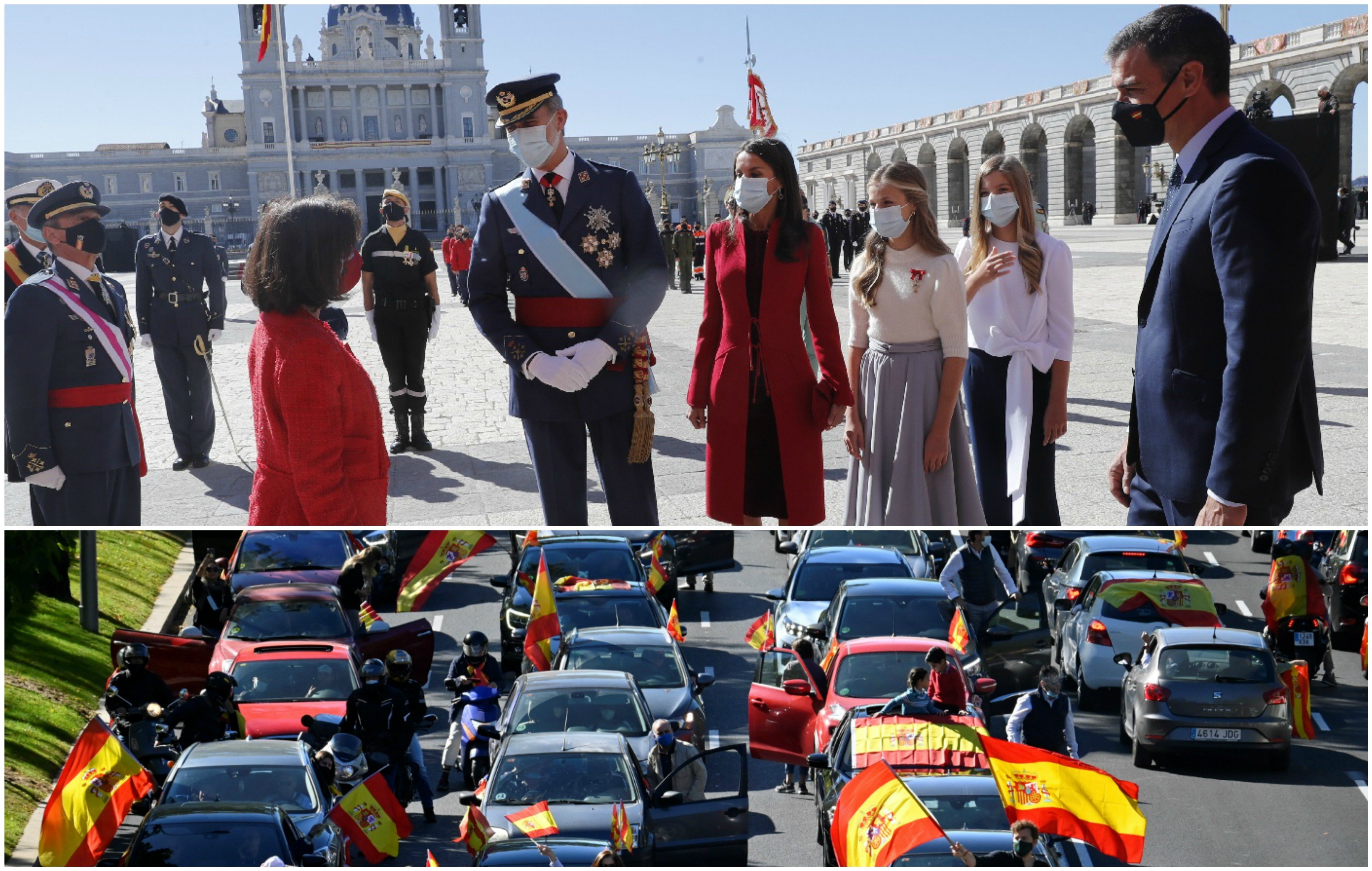 Pero, al parecer, la gente, que no pudo disfrutar del desfile militar propio de esta fiesta, estaba en la calle, manifestándose en automóvil por las principales ciudades españolas.