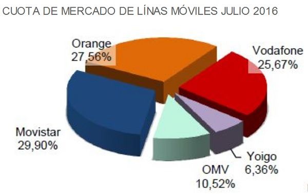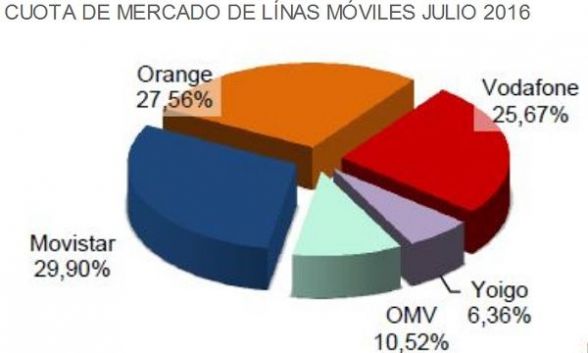 - El resto se reparte entre Yoigo (6,36%) y las operadoras móviles virtuales sin red (10,52).