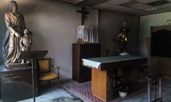 - Los atacantes lanzaron un objeto incendiario por la ventana, que ha quemado imágenes, suelos y paredes.