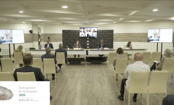 Junta general de accionistas, semipresencial, de Meliá, desde el Hotel Meliá Palma Marina, en Palma (Mallorca), aún no abierto al público. Sí, a 10 de julio todavía hay muchos hoteles vacacionales de nuestro país que no han abierto sus puertas. A estas alturas nadie duda de que el sector va a sufrir su mayor crisis de la historia, también a nivel mundial.