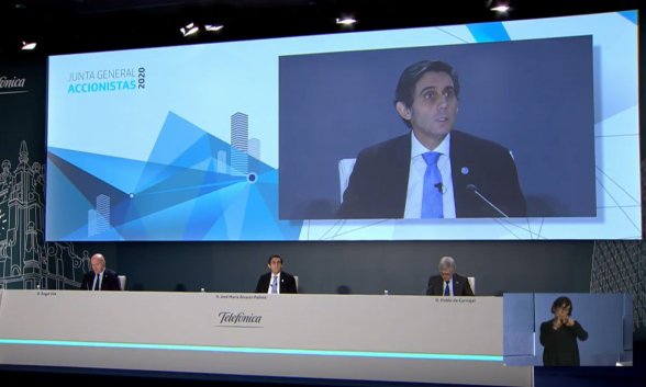Se ha celebrado este viernes la Junta de Accionistas de Telefónica, de manera telemática, como es menester en tiempos de confinamiento. El discurso de José María Álvarez-Pallete ha girado en torno a la respuesta de Telefónica al coronavirus. Mensaje importante: la compañía se compromete a seguir repartiendo dividendo, aun cuando la situación económica es de incertidumbre. Dos pagos: en diciembre de este año y en junio de 2021. Dividendo flexible: en acciones o efectivo.