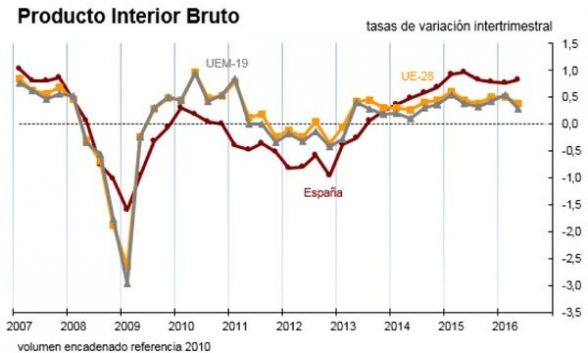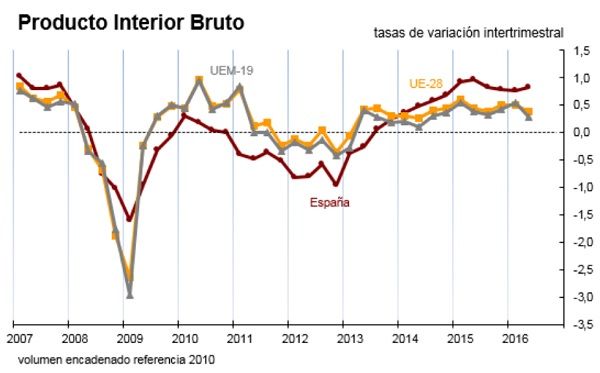 lo que el INE esperaba a finales de julio ( 0,7%). Así, encadena ya cuatro trimestres de aumentos a este ritmo gracias al