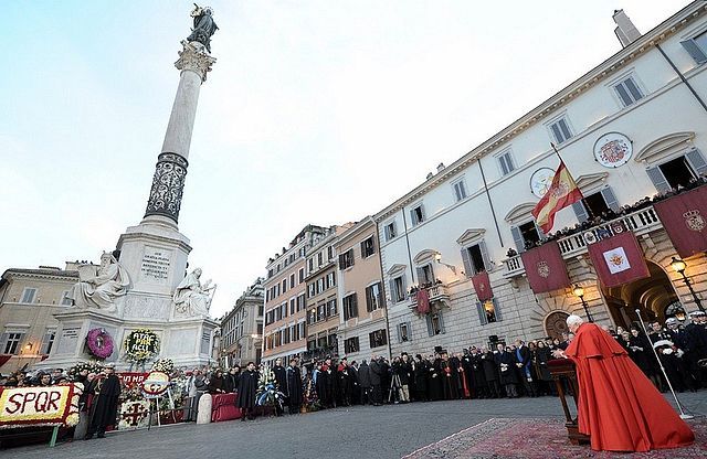 - Por todo ello, el Papa Pío IX mandó construir una columna en dedicación a la Inmaculada en la Plaza de España de Roma.