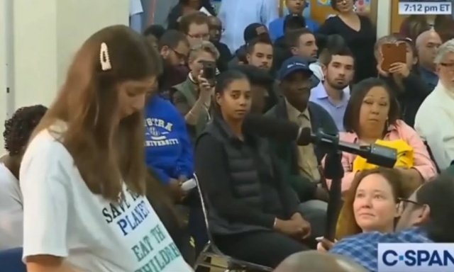 Durante el encuentro de la política demócrata con los vecinos del distrito al que representa, una mujer tomó la palabra para abordar el problema del cambio climático y proponer posibles medidas para atajarlo en un discurso casi apocalíptico: "No nos queda suficiente tiempo (...) Tenemos que empezar a comer bebés". "Un profesor sueco dice que podíamos comer personas muertas, pero eso no es lo suficientemente rápido. Creo que su nuevo eslogan de campaña debe ser: 'Tenemos que empezar a comer bebés'", propuso fuera de sí, mientras se quitaba la chaqueta y dejaba a la vista el texto de su camiseta, 'Salva el planeta, come niños’, añade la información de 20 Minutos.