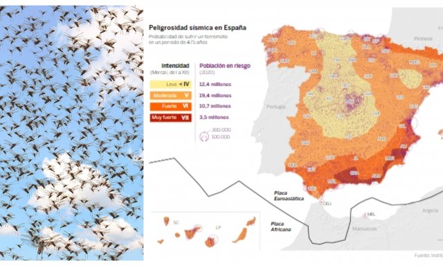 No es broma. El País, el diario más vendido de España, anuncia en portada “el beso geológico”, que coloca en riesgo de terremoto a 14 millones de españoles. Mientras, empieza a correr por las redes sociales la previsible plaga de langosta africana, lo cual aporta a la chifladura general reinante un nota de color extraordinariamente efectista (no por lo de África sino por lo de la langosta). Reparen en que los dos medios enlazados son el País y Público, inequívocamente progresistas. Por tanto, más amantes del rigor que de la verdad.