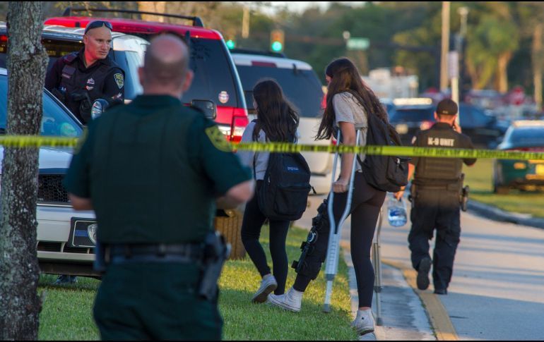 escuela de Florida (EEUU) tras un tiroteo, en una jornada de horror donde los estudiantes aterrados evacuaron las instalaciones tras los disparos, mientras otros escondidos en las aulas pedían ayuda por mensajes de texto.Esta matanza en el
