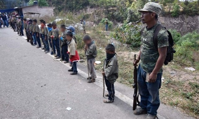 En México, la violencia en el país está llevando a la población a tomar medidas extremas y hasta cuestionables. Este miércoles, 19 niños fueron presentados como policías comunitarios en el municipio de Chilapa de Álvarez y José Joaquín de Herrera, en el estado sureño de Guerrero. Se trata de los nuevos integrantes de la Coordinadora Regional de Autoridades Comunitarias (CRAC-PF): menores que van de los 6 a los 15 años de edad y que ahora están siendo entrenados para combatir la violencia que azota la región, publica Infobae.