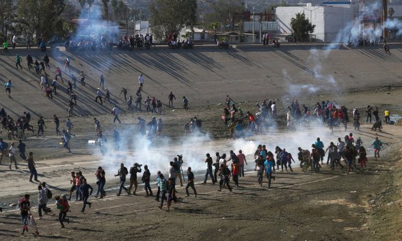 Poco más de una hora después de que empezase una manifestación que había sido convocada para esta mañana, numerosos integrantes de la caravana de inmigrantes que se encontraban a la espera de poder cruzar la frontera entre los dos países trataron de atravesar el límite entre ambos países por la garita de El Chaparral. La Policía fronteriza estadounidense les lanzó gas lacrimógeno para contenerlos.