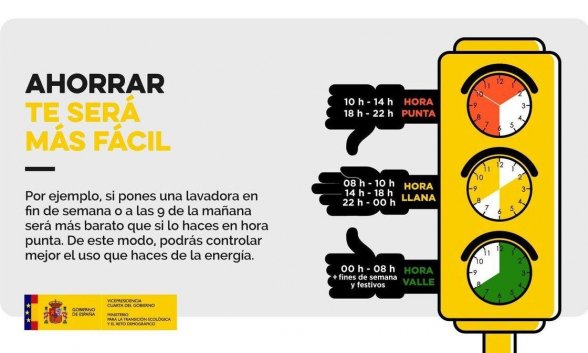 La nueva factura de la luz entrará en vigor dentro de unas horas, concretamente, cuando comience el 1 de junio, distinguiendo tres tipos de hora: la punta (de 10 a 14 horas, y de 18 a 22 horas), que será la más cara; la llana (de 8 a 10 horas, de 14 a 18 horas, y de 22 a 0 horas); y la valle (de 0 a 8 horas, más fines de semana y días festivos), que será la más barata. Así, el Gobierno alterará las costumbres y los horarios de los españoles, de hecho, el cartel de la Vicepresidencia cuarta y del Ministerio de Transición Ecológica y Reto Demográfico, que dirige Teresa Ribera, recomienda cuando poner la lavadora: en fin de semana o a las 9 de la mañana será más barato que si lo haces en hora punta. “De este modo, podrás controlar mejor el uso que haces de la energía”. ¿En serio? Lo que intentarás es que la factura no te salga por un ojo de la cara.