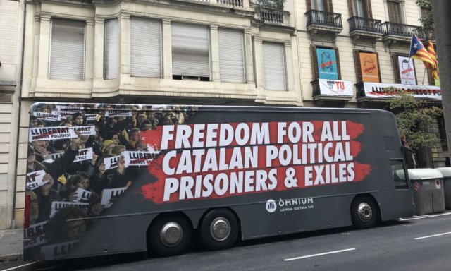 El autobús en apoyo a los presos políticos y exiliados catalanes, criticado por el PP por tergiversar la realidad