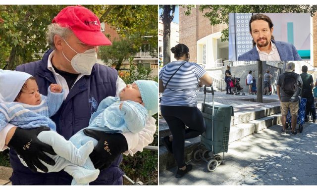 De esas miles de personas que atiende al día la fundación, según sus propios datos, el 98 por ciento de las familias, de la nueva pobreza, que perdieron sus trabajos y sus medios de vida, no reciben el Ingreso Mínimo Vital (IMV) -la misma ayuda para los más vulnerables que prometía Pablo Iglesias una y otra vez-, ni ningún otro subsidio que les permita salir adelante en un tiempo tan difícil. De modo que se han convertido en víctimas de impagos de alquileres y de otras necesidades básicas. Y esto está llevando cada día a convertir las “colas del hambre” en “colas de familias sin techo”, viéndose obligadas a pernoctar en los parques, incluso con niños pequeños. Algunos utilizan viejos coches o furgonetas como viviendas en lugares como la Casa de Campo.