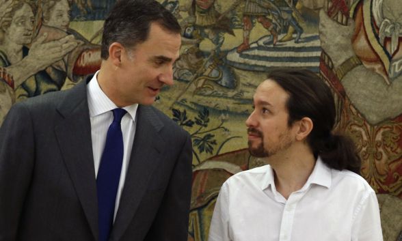 Rey Felipe VI su intención de formar un "Gobierno del cambio" con PSOE e Izquierda Unida. Iglesias, que encabeza la tercera fuerza política en las pasadas elecciones, ha asegurado que sentía la responsabilidad de que fuera el jefe del Estado el primero en ser informado de esta propuesta, informan