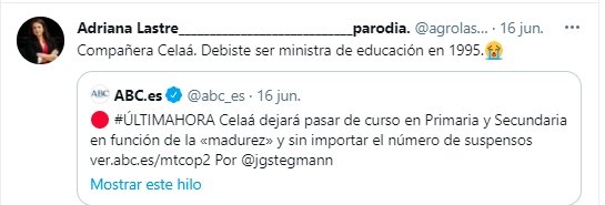 Al final, Celaá se autoconvence de que su pensamiento es el acertado cuando nos dice, por ejemplo, que durante la pandemia “los alumnos han estudiado más porque tenían miedo”... ¿al coronavirus? ¿a los supensos? ¿a la Lomloe?