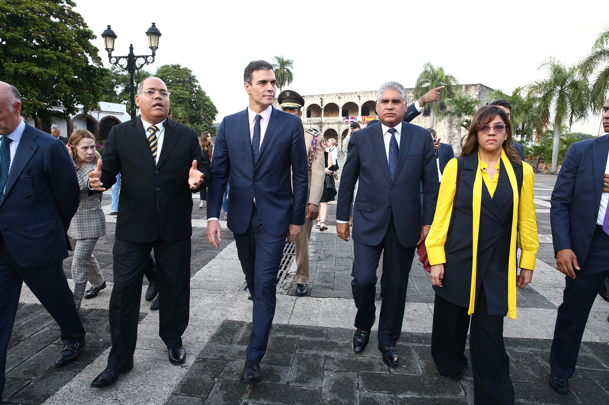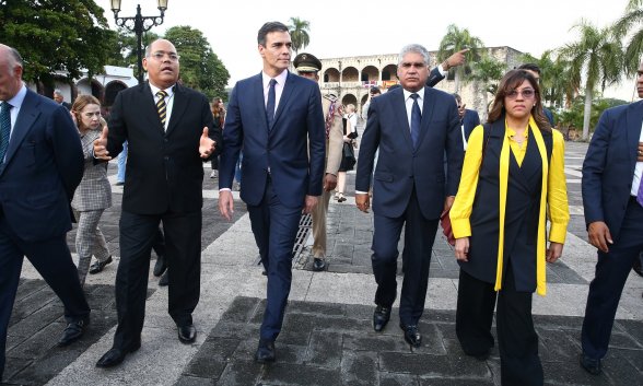 Tras su paso por la Internacional Socialista, donde estuvo acompañado por el canciller dominicano, Miguel Vargas, Sánchez inició su visita oficial a la República Dominicana. El presidente dominicano, Danilo Medina, le recibió en el Palacio Nacional y ambos celebraron una reunión que concluyó con la firma de la renovación del Marco de Asociación País, la hoja de ruta de la cooperación al desarrollo de España en República Dominicana, y un memorándum por el que se crea un grupo de trabajo para reforzar las relaciones económicas y comerciales. Asimismo, Sánchez y Medina emitieron una declaración conjunta en la que expresaron su preocupación por la situación en Venezuela y Nicaragua.