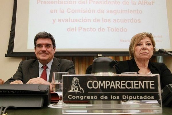 en la imagen, su presidenta, la popular Celia Villalobos, junto al presidente de la AIReF, José Luis Escrivá) ha cumplido un año de reuniones, pero todo sigue como el primer día. Algo difícil de entender cuando la reforma de las pensiones urge por el