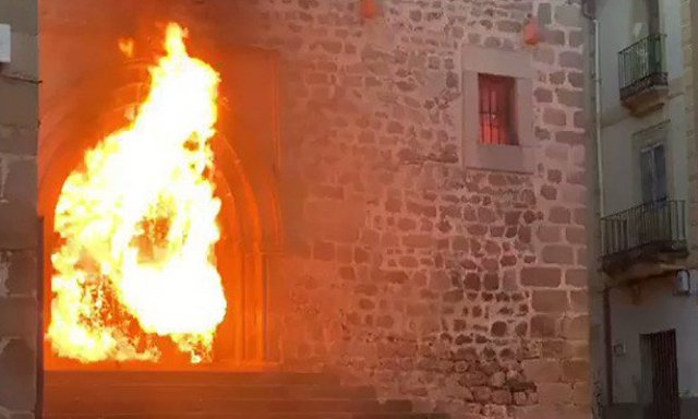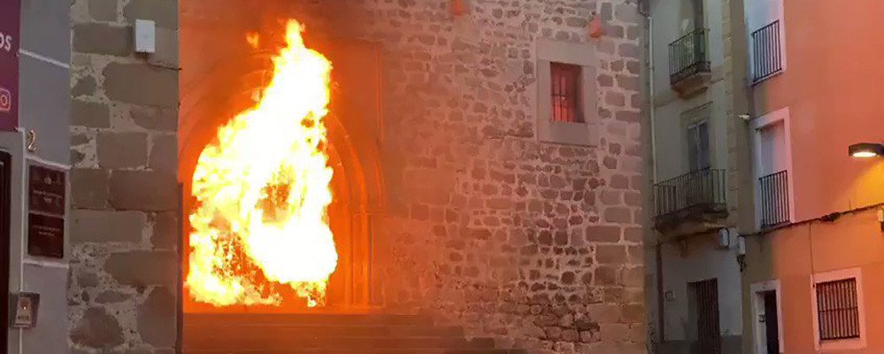 «Ha habido algún momento de miedo porque en el interior se almacenaban las bombonas de butano que se utilizan para la calefacción», añadió Fernando Pizarro, que precisó también que «el fuego traspasó la puerta sur (la principal es la norte), que se ha quemado, y llenó todo el templo de humo, que salió por la cubierta de la iglesia. Cuando nos hemos podido acercar al retablo, que es una joya, hemos podido ver que estaba dañado por el humo pero no por el fuego», recoge el mismo medio