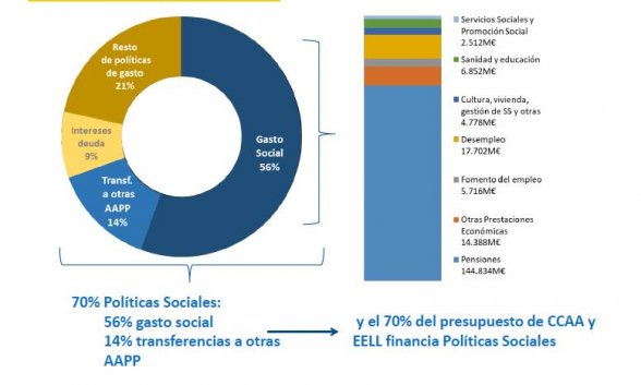 En total, el gasto social supone un 55,6% del gasto público, es decir, 196.782 millones, un 2,8% más que el año pasado.