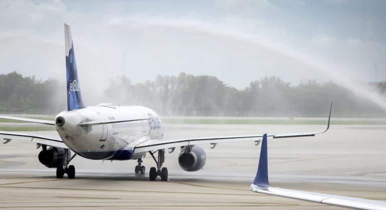 JetBlue, a bordo del cual viajaron turistas, periodistas y autoridades, incluido el secretario de transporte de EEUU,