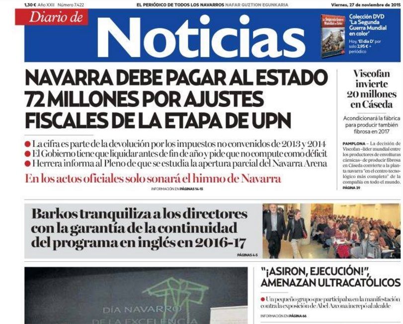 En la noche del jueves, el citado periódico titulaba: Un reducido grupo de ultracatólicos corea en la plaza del Ayuntamiento de Pamplona "Asirón, ejecución". Así, informaba, bueno en realidad, desinformaba acerca de la manifestación celebrada en la plaza del Ayuntamiento de Pamplona contra la exposición blasfema. Pero no contento con su hazaña, este viernes ha llevado la mentira a su portada, con el titular: "¡Asirón, ejecución", amenazan ultracatólicos!Noticias de Navarra miente soberanamente al decir que en la manifestación hubo amenazas de muerte contra el alcalde de la ciudad, el proetarra de EH Bildu, Joseba Asirón, y tampoco aporta ningún tipo de prueba. Además, destaca que alrededor de 300 personas se concentraron frente al Ayuntamiento, cuando en realidad asistieron unas 1.000.Pero lo peor es que el disparate ha llegado hasta el consistorio pamplonica, donde todos los grupos han rechazado las amenazas de muerte y los insultos, que según el citado periódico se dieron en la manifestación. El problema es que no hubo tal cosa. UPN ha dicho que no les constaba, pero en caso de que hubieran existido por supuesto que las condena. Sin embargo, Europa Press ha secundado la mentira del Noticias de Navarra y ha señalado que por unanimidad la Junta de Portavoces de Pamplona ha mostrado su "absoluta repulsa" a los "insultos y amenazas de muerte" contra Asirón.Pasemos a referir los verdaderos hechos. Según cuentan los organizadores a Hispanidad, unas 1.000 personas llenaron la plaza del Ayuntamiento -la misma en la que tiene lugar el famoso 'chupinazo'-, portaron cruces, rezaron y sólo pidieron respeto y la dimisión del alcalde, tal y como recoge Navarra Confidencial. De hecho, el lema de la pancarta que encabezaba la manifestación era: "Navarra pide respeto. Cierre de la exposición blasfema". Además, si hubiera habido los insultos y amenazas de muerte que algunos medios señalan, había un buen número de policías que podría haber identificado a los culpables. Pero no hizo falta tal cosa. Así lo demuestra el siguiente vídeo y algún otro testimonio.Paralelamente, el verdugo, es decir, el 'artista' Abel Azcona, se convierte en víctima en aras de la libertad de expresión y sigue haciendo de las suyas. El jueves, en Twitter, no dudó en anunciar el robo de más formas consagradas. "Voluntarios recogiendo hostias consagradas de nuevas misas, entre ellas, la de ayer de reparación. Ya tengo treinta y dos nuevas! Sois amor", escribió. ¡Vaya caradura! En otro de sus tuits presumía de uno de sus 'triunfos': "Juez desmiente al Arzobispado y decide NO clausurar "Desenterrados". La exposición sigue completa hasta 17 de Enero. Libertad de expresión!", demostrando que ha pasado del 'basta ya' del arzobispo de Pamplona, monseñor Francisco Pérez. Y es que el pasado jueves, la jueza del Juzgado de Instrucción número 1 de Pamplona rechazó la clausura cautelar de la exposición al no estar ya las formas consagradas y no consideró urgente la retirada de las las fotos.Pero, ¿qué libertad de expresión, señor Azcona? Usted ha cometido presuntos delitos recogidos, nada más y nada menos que en el Código Penal: concretamente en el artículo 524, en el 525 y en artículo 510. Y eso no es ninguna tontería ni ninguna obra de arte, pues conllevan: penas de prisión de seis meses a un año y multa económica de 12 a 24 meses, multa de 8 a 12 meses, entre uno y cuatro años de prisión y una multa de seis a 12 meses, respectivamente.A la par que éstos presuntos delitos, Azcona ha atacado la libertad religiosa, un derecho por el que tampoco ha velado el alcalde, tal y como señaló el exregidor y actual líder de la oposición, Enrique Maya (UPN), a Hispanidad. Sin embargo, éste aparece recogido en el artículo 16 de la Constitución Española y también en el artículo 18 de la Declaración Universal de Derechos Humanos. A pesar de todo esto, al 'artista' no le faltan palmeros, incluso la ONG Fundación Internacional de Derechos Humanos, que en Twitter señala: "Las manifestaciones artísticas tienen derecho a ejercer la crítica frente a concepciones ideológicas y religiosas. Apoyamos a @abelazcona". ¡Increíble! Parece que más de uno ha perdido el norte... y el sentido común, pues una cosa es la crítica y otra la ofensa.Finalmente, el Pleno del Ayuntamiento de Pamplona ha rechazado la retirada de "elementos" relacionados con la "profanación". EH Bildu, Geroa Bai, Aranzadi e Izquierda-Ezquerra han rechazado la propuesta de declaración de UPN, mientras PSN ha optado por la abstención.Ante tal decisión, Abogados Cristianos va a ampliar la querella que interpuso contra Azcona a la concejal de Cultura, Maider Beloki. La proetarra de EH Bildu no ha dudado en sumarse al montaje de Noticias de Navarra y ha denunciado que "grupos ultras y fundamentalistas religiosos han aprovechado para lanzar una campaña política en contra del ayuntamiento y su alcalde". La cual, en su opinión, "busca limitar la libertad de expresión".Pero la exposición de Azcona no es desgraciadamente la única ofensa a los cristianos que sucede estos días en la capital navarra. También han aparecido pintadas de "Opus kampora" ("Opus fuera") e "Iglesia hipócrita" en algunas iglesias de la ciudad.Cristina Martín cristina@hispanidad.com