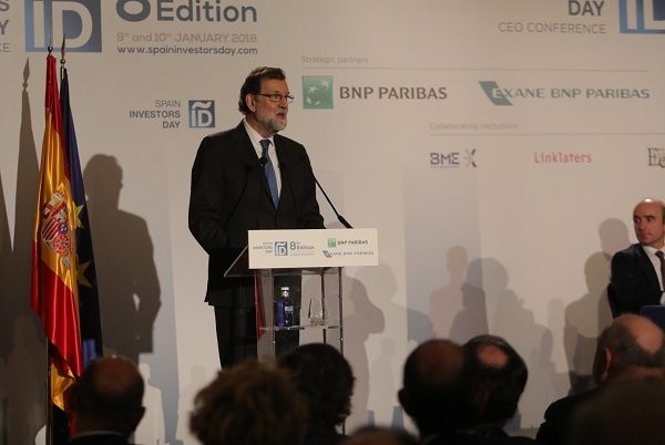 VIII Spain Investors Day para asegurar que la economía española ha superado una crisis económica sin precedentes (cinco años de recesión), gracias, naturalmente, a las reformas emprendidas por su Gobierno. Es un foro, todo hay que decirlo, pensado para atraer las inversiones internacionales; de ahí el tono triunfalista, que explica todo lo demás.La única sombra en el horizonte de la recuperación, ha señalado también, viene de la