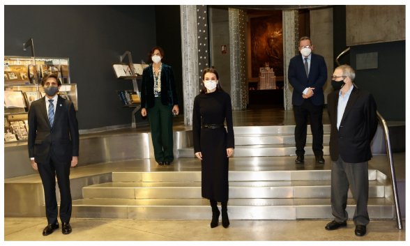 El pasado jueves 21 la Reina acudió a la Fundación Telefónica. Le recibió su presidente César Alierta, que sorprendió a los presentes: descorbatado y con una mascarilla con la leyenda VERDE (Viva El Rey De España).