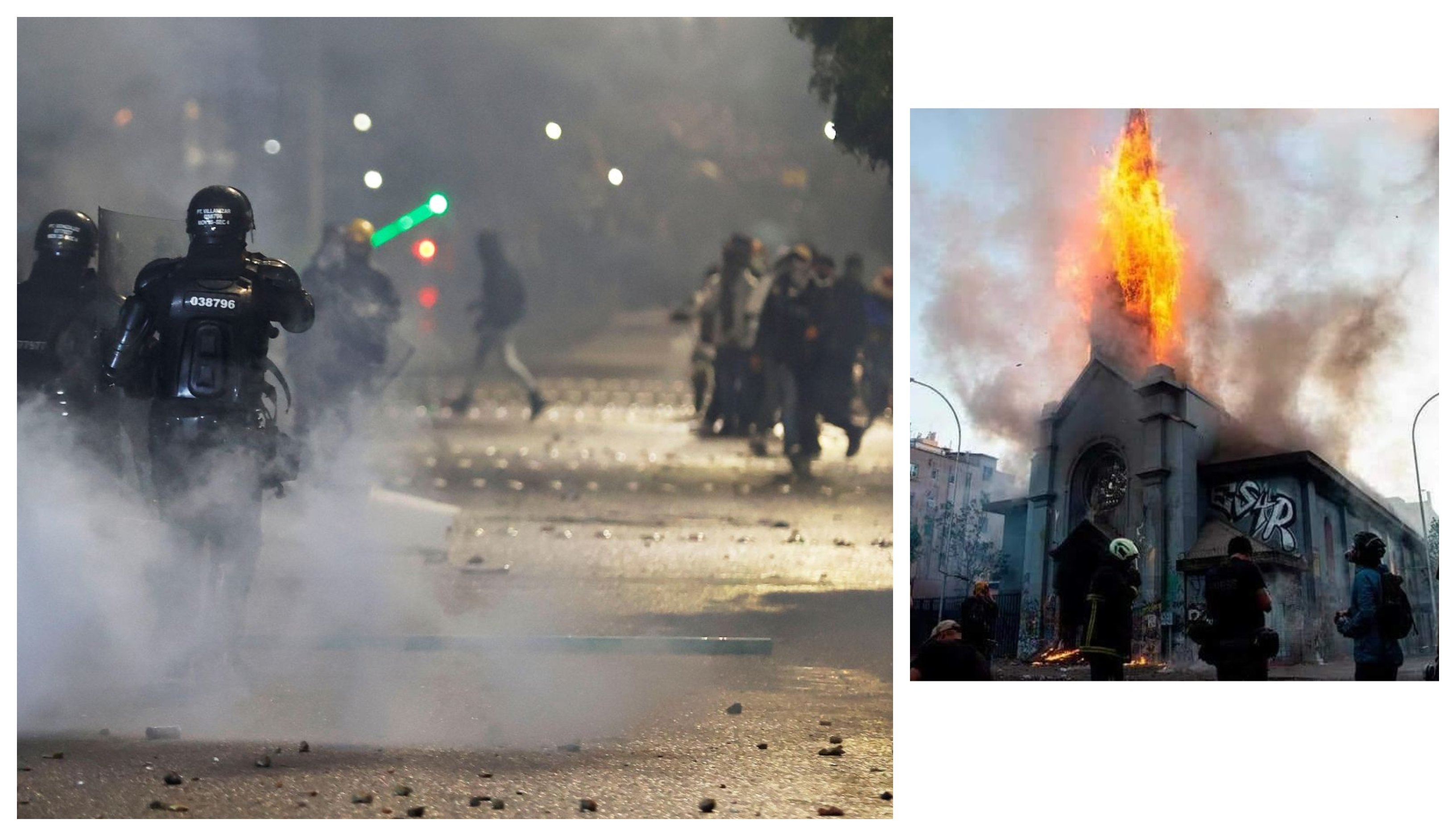 Colombia empieza a parecerse a Chile: se empieza protestando por la subida del autobús y se acaba pidiendo el fin de la violencia policial… de forma un tanto violenta. En medio, se profanan iglesias