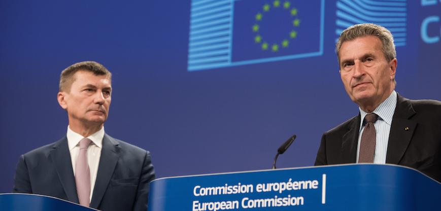 en la imagen, junto a Oettinger). "Debe haber una cláusula, los detalles hay que discutirlos. Habrá que buscar el equilibrio", ha concluido.Así las cosas, el texto presentado indica que, en caso de conflicto, son