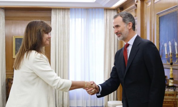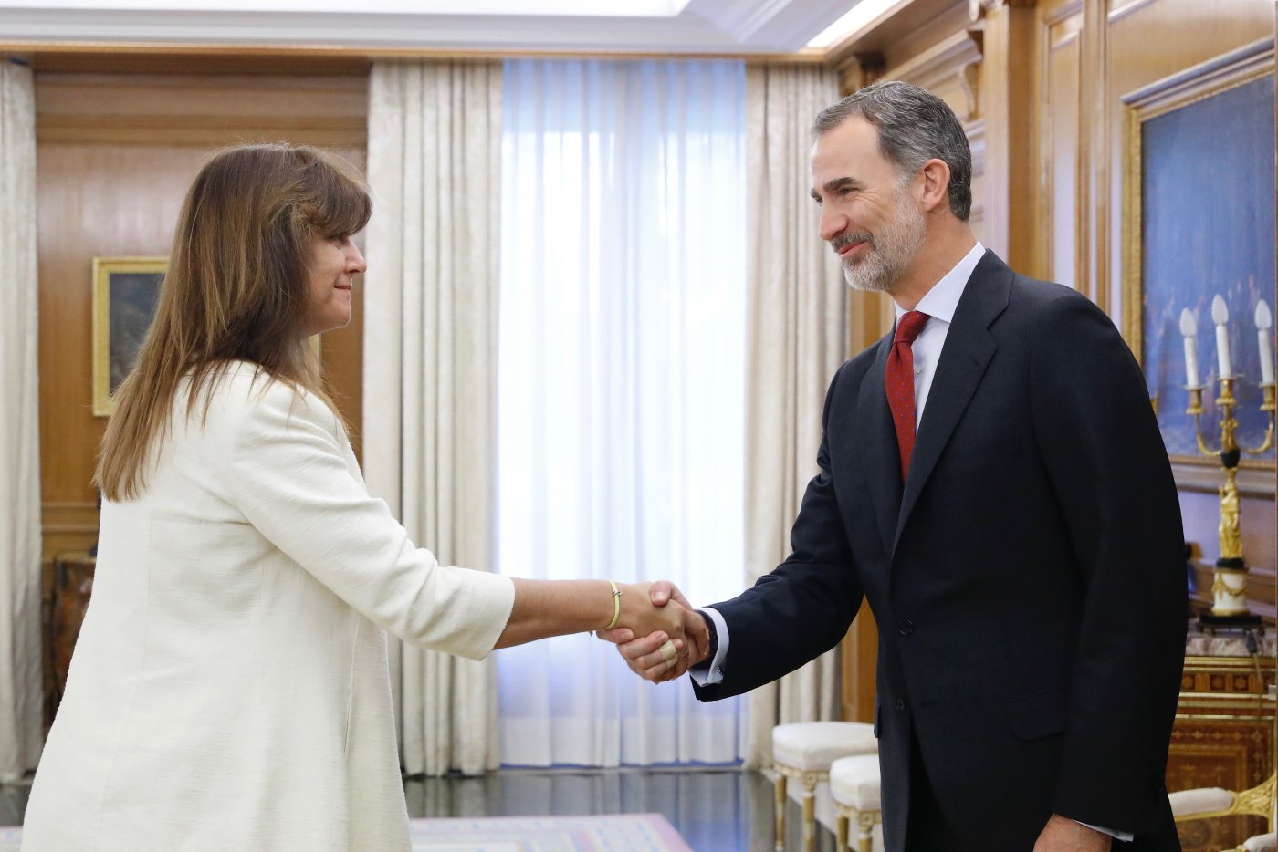 Último día de la ronda de consultas del Rey. Abre la diputada de Junts per Catalunya (JxCat), Laura Borrás, haciendo gala del amarillo en un broche de su chaqueta, así como en la pulsera que lleva en la mano con la que ha saludado a Felipe VI. “Vengo a recordar que hay presos políticos”, afirma a los periodistas, “estoy en Zarzuela como la portavoz de Jordi Sànchez”.