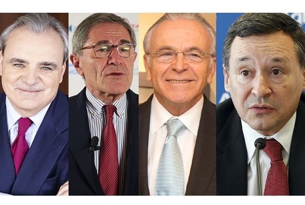 Isidro Fainé (tercero, en la imagen) por la participación del 6,9% de la española en el grupo francés.La crisis en Suez va más allá, lo que explica su evolución en bolsa, por la