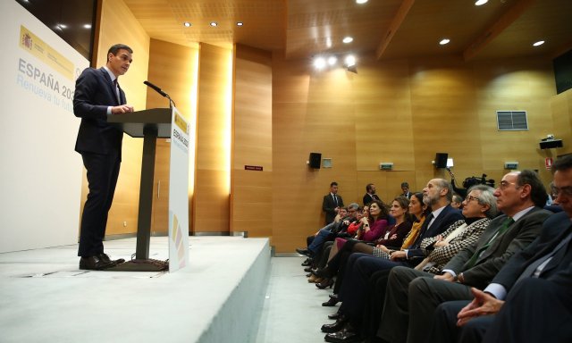 El presidente Sánchez sigue a por todas, en clave sobre todo electoral, este miércoles con la presentación del paquete de medidas de energía y clima para descarbonizar al 100% de España en 2050, y ante los primeros espadas de las eléctricas, los mismos que cuestionan sus planes, salvo el eólico Sánchez Galán (en la imagen, a la derecha), a los que mezclado don ONG del tipo Amigos de la Tierra, Ecologistas en Acción o Greenpeace.