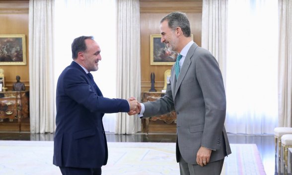 Primer día de la ronda de consultas de los líderes políticos con Felipe VI. Recibía a las 12:15 horas al presidente de Unión del Pueblo Navarro (UPN) -que se hizo con 19 escaños-, Javier Esparza. Su encuentro con el monarca ha girado alrededor de impedir que "Navarra y España estén al albur de las decisiones del independentismo vasco o catalán".