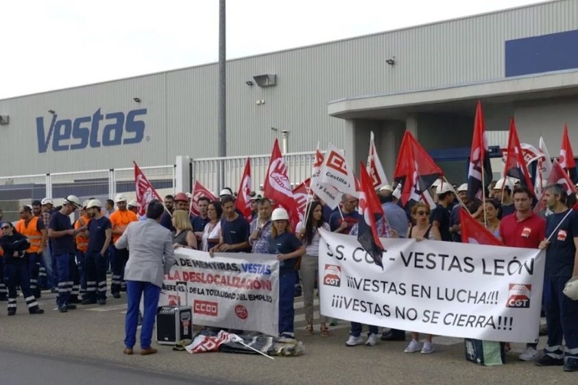 Vestas ha señalado que “la reciente evolución del mercado ha visto una disminución de la demanda de la turbina eólica de 2 MW en Europa, mientras la demanda de la turbina de 4 MW en la región puede satisfacerse con una menor capacidad que la que actualmente proporcionan las fábricas de nacelles en Europa”. Es la misma razón que esgrimió su principal competidor, Siemens Gamesa, a principios de año para cerrar su planta de Miranda de Ebro (Burgos). Además, hay que recordar que los trabajadores de la fábrica leonesa estaban en huelga indefinida desde el pasado 16 de julio porque Vestas iba a deslocalizar tres de las cuatro líneas de producción a China e India.