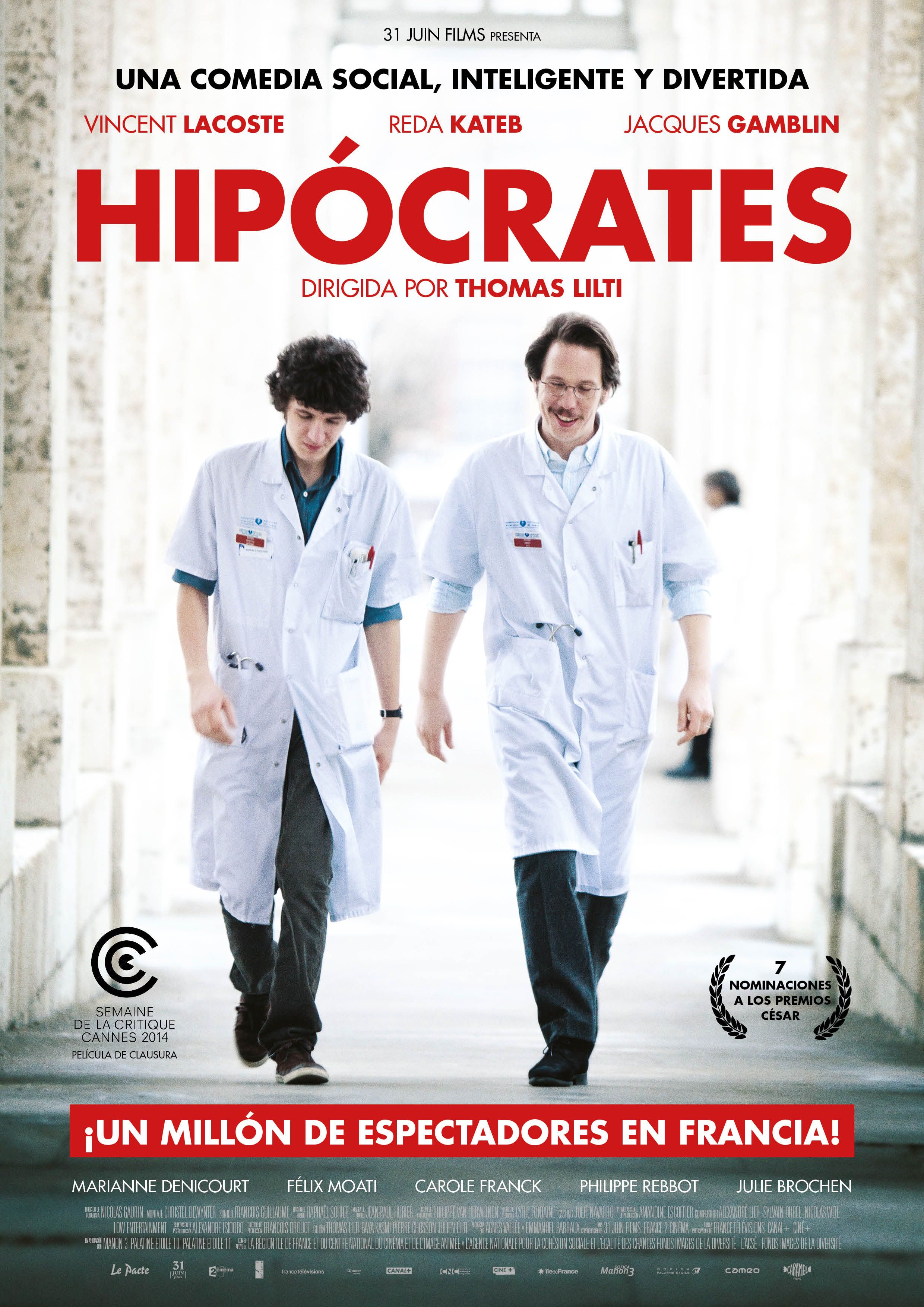 Soy médico y me gusta serloEsta tragicomedia social francesa, que aborda los retos a los que se enfrentan los profesionales que ejercen la medicina, estuvo nominada a siete premios César (similares a los Goya españoles).Benjamín acaba de terminar la carrera de Medicina y entra como residente en el mismo departamento del hospital donde trabaja su padre en un cargo de responsabilidad. Su inmadurez e inexperiencia le llevan a cometer un grave fallo durante una guardia, falta que es apreciada por otro residente, un médico extranjero muy fiable en el ejercicio profesional que intenta homologar su título en Francia.Muy realista desde las primeras imágenes, Hipócrates está argumentalmente muy alejada de esas series televisivas que dedican mucho tiempo a narrar romances entre facultativos, porque plantea temas de candente actualidad que ponen sobre el tapete asuntos donde sale a la luz la ética profesional y donde se vislumbra que el ejercicio de la Medicina siempre debe ser vocacional. Es cierto que toma una postura demasiado clara (y algo panfletaria) sobre los recortes económicos en un sector tan sensible e, incluso, sobre qué ocurre cuando la gerencia hospitalaria la ejercen profesionales ajenos al área hospitalaria, pero a su favor tiene que no se anda con "paños calientes" cuando censura la dejadez de algunos miembros de la sanidad o el corporativismo de los doctores a la hora de tapar errores médicos claramente identificables.Para: De recomendable visión para todos aquellos estudiantes que quieran dedicarse a la Medicina y también adecuada para los que les gusten los dramas con un trasfondo realJuana Samanes