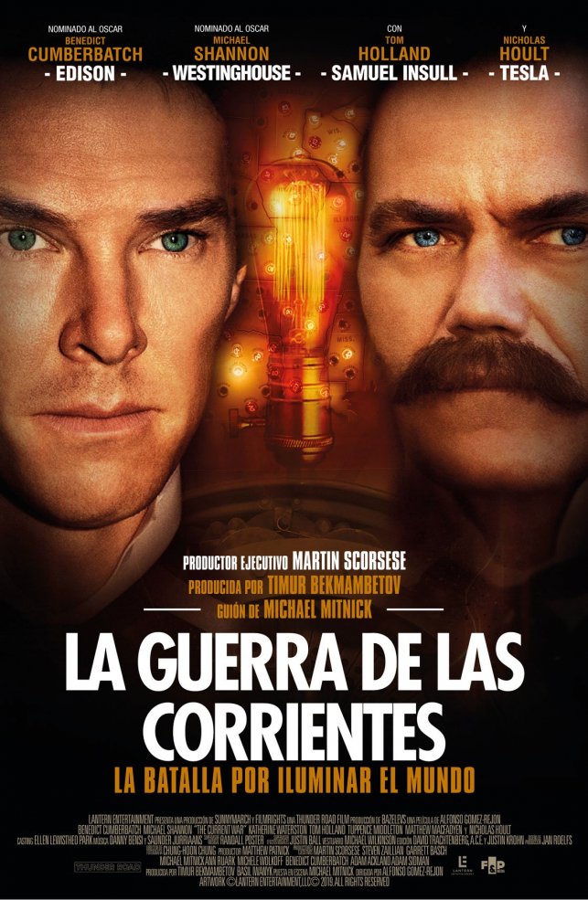 Un trozo de Historia, fundamental no solo para Estados Unidos sino para el resto del mundo, ofrece La guerra de las corrientes, que narra la lucha entre dos grandes visionarios como fueron Thomas Edison y George Westinghouse (interpretados respectivamente por Benedict Cumberbatch y Michael Shannon) para poner en marcha el sistema eléctrico a finales del siglo XIX.
