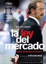 La deshumanización de la sociedad actual es retratada con inteligencia en este drama realista, sexto largometraje del realizador francés Stéphane Brizé. En el mismo se abordan con perspicacia algunas cuestiones sociales que afectan el mercado laboral actual.Rodado como si fuera un documental, La ley del mercado narra el día a día de Thierry, un padre de familia de 51 años, con un hijo con parálisis cerebral, que lleva 20 meses parado y que busca una salida a su situación laboral. En diferentes escenas le vemos en la oficina de empleo, con su esposa y su vástago, humillándose en entrevistas de trabajo o en conversaciones con sindicalistas de su anterior empleo. Todo captado por la cámara de una forma tremendamente naturalista.El actor francés Vincent Lindon realiza un trabajo memorable al mostrar la transformación de este hombre: un luchador al que las circunstancias económicas le hacen "tragarse" su dignidad desempeñando un trabajo como vigilante de seguridad en un centro comercial. Su interpretación, contenida y sobria, le ha valido ya el premio al mejor actor en el pasado Festival de Cannes y está nominado, en esa misma categoría, en los Premios Cesar (como los Goya en Francia)La ley del mercado, que ha obtenido un enorme éxito en su país, produce un efecto similar en el espectador que la excelente El hijo de Saúl o, lo que es lo mismo, plantea un desarrollo argumental que provoca que el público se implique emocionalmente y, en este caso, reflexione sobre los asuntos que contempla en la pantalla como la penuria de aquellos que roban en supermercados o los que delatan a sus propios compañeros…Aparentemente se trata de un drama social sencillo que describe las cotidianas vivencias por las que atraviesan muchos desempleados, pero la carga de profundidad es tan poderosa que deja sobrecogido a cualquiera.Para: Los que les gusten los dramas inteligentes que denuncian pero no caen en la demagogiaJuana Samanes