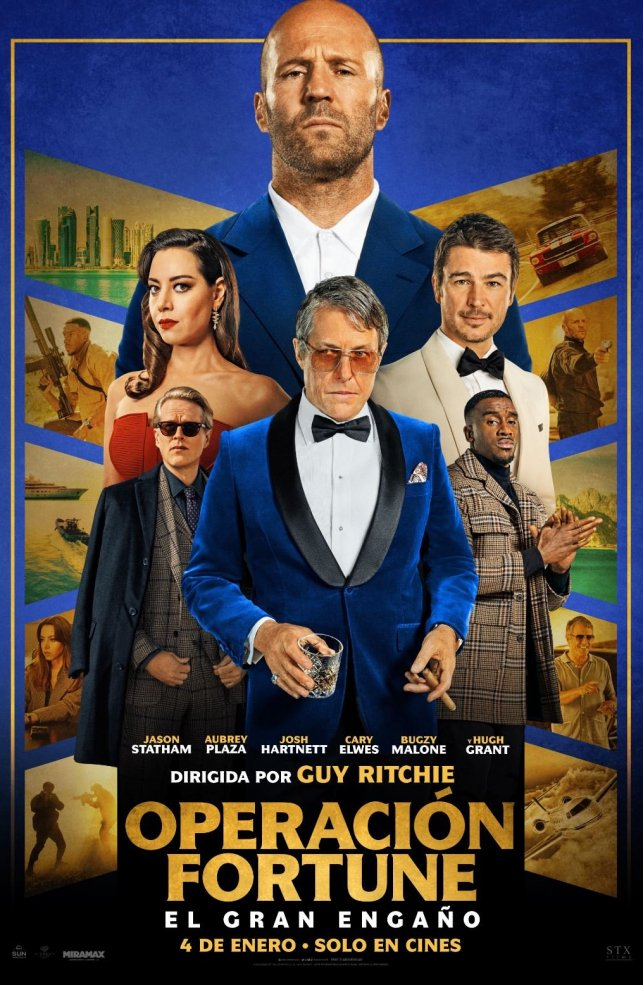 Sin pretensiones más que de entretener, y como es usual en sus títulos más populares, en el universo de Ritchie abundan los personajes bien descritos (es todo un descubrimiento la vis cómica de Josh Harnett haciendo de actor florero-tonto), las escenas de acción donde abundan las persecuciones sin fin y, en general, “esas fantasmadas” que tanto les divierten a los seguidores del británico cuando se pone a hacer películas divertidas, y ésta lo es. Repiten con el cineasta actores como Jason Statham o Hught Grant, al que le va muchísimo interpretar a un villano cruel pero simpático, mientras la película nos hace viajar de un lado a otro del planeta con una facilidad pasmosa. También aparece en la pantalla Cary Elwess, el inolvidable héroe Westley en la maravillosa película de aventuras La princesa prometida.