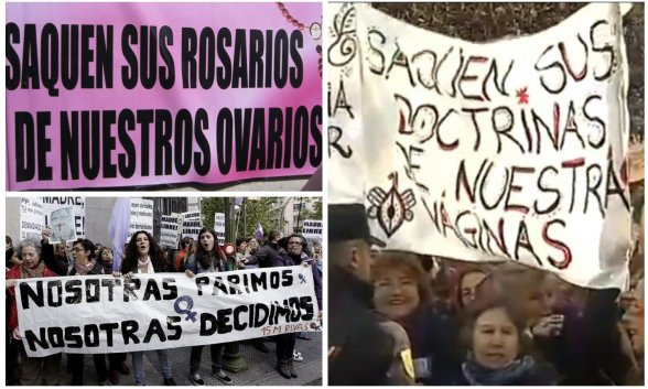 Otra idea fuerza del feminismo imperante, aún más delicada: “Saquen sus rosarios de nuestros ovarios”.