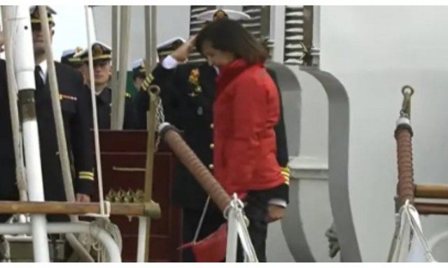 Margarita Robles es recibida con una impresionante pitada a su llegada al Juan Sebastián Elcano.