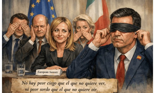 Evidentemente, España no es la causa del problema europeo, pero sí posiblemente su máxima expresión. Oscila entre la retórica de relevancia global y una presencia internacional cada vez más marginal, por no decir inexistente. El episodio Meloni-Sánchez es casi una anécdota, pero simbólicamente muy elocuente: muestra a un lider preocupado por el prestigio ceremonial en un momento en que lo que está en juego es la capacidad real de influencia en la toma de decisiones.