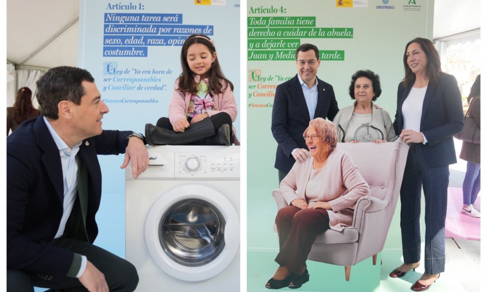 El presidente de la Junta, Juanma Moreno, ha presentado en Sevilla la campaña "Iguales ante la plancha", una campaña para recordarles a los andaluces varones que las tareas del hogar y los cuidados de la familia también son cosa de ellos. Con un presupuesto de unos 3 millones de euros, Moreno considera que ésta es la campaña "más potente" puesta en marcha por el Gobierno andaluz en favor de la conciliación y la corresponsabilidad de mujeres y hombres en los trabajos del hogar.