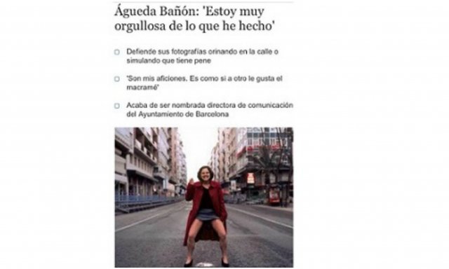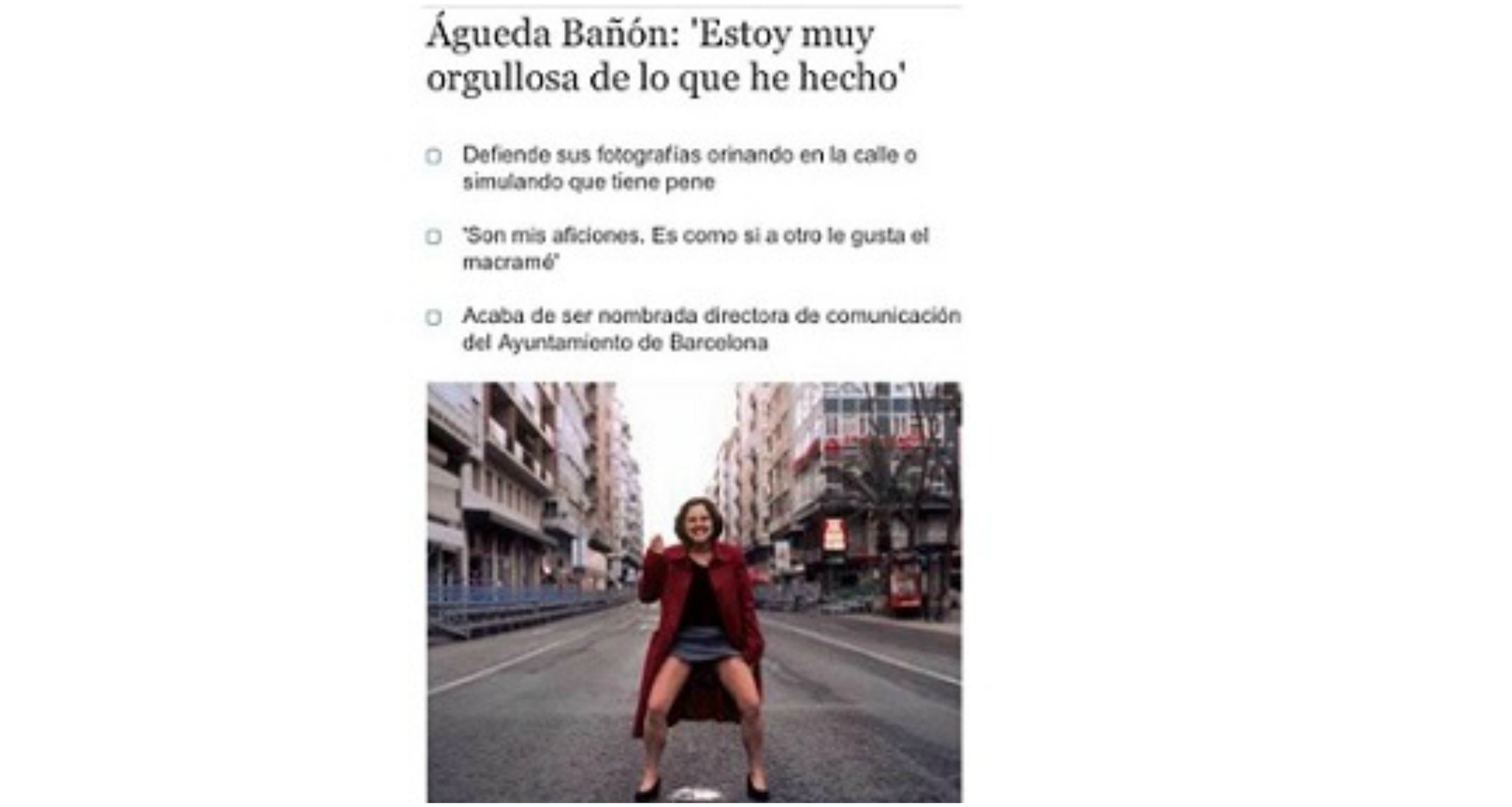 Pero es que hay uno más que jamás ha aparecido en el Portal de Transparencia: Àgueda Bañón Pérez. La directora de comunicación del Ayuntamiento de Barcelona no figura en la web de buenas prácticas de gobernación del segundo mayor consistorio de España. ¿Será quizá por la polémica que envolvió a su fichaje? Cuando la alcaldesa la incorporó a su equipo en 2015, trascendieron las imágenes de Bañón orinando en la Gran Vía de Murcia, en una acción que se enmarcó en una campaña de protesta de un colectivo feminista y por la sexualidad enfocada a las mujeres. La primera edil defendió entonces sus "méritos", separándolos de una "carrera artística".