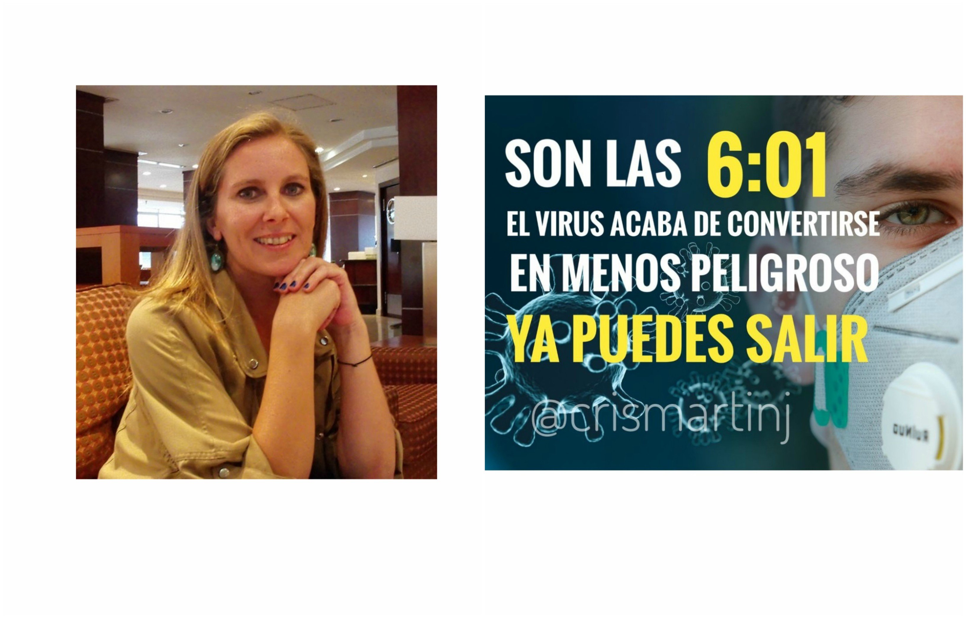 Covid. Cristina Martín Jiménez, autora de "La verdad de la pandemia" publica el mensaje del día: son las 6:01, el virus acaba de convertirse en menos peligroso. Ya puedes salir