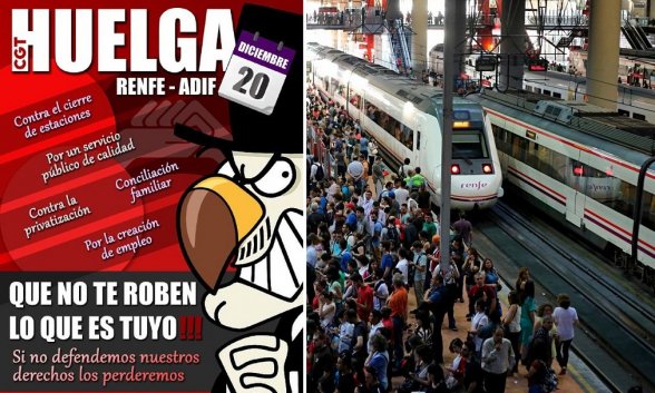 Y por cierto, no es la primera vez que CGT hace huelga en víspera de fin de semana, puente o vacaciones: en esta ocasión, afectará a 16.000 pasajeros. Muy oportuno. Pero si hubiera una ley de huelga se podría fijar un porcentaje necesario de representación a la hora de convocar un paro o que estas no se pudieran hacer en servicios estratégicos en fechas señaladas…