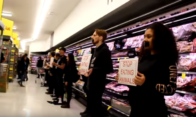Ha sucedido en un supermercado de Auckland en Australia. Un grupo de radicales veganos se plantó ante las neveras de la carne con carteles en los que se leía claramente: "Dejen de comer carne". Los clientes que allí se encontraban se quedaron patidifusos ante la insólita escena. Resulta que una muralla de activistas vestidos de negro pretendía impedir que los consumidores se llevasen una bandeja de pollo, ternera o cerdo.