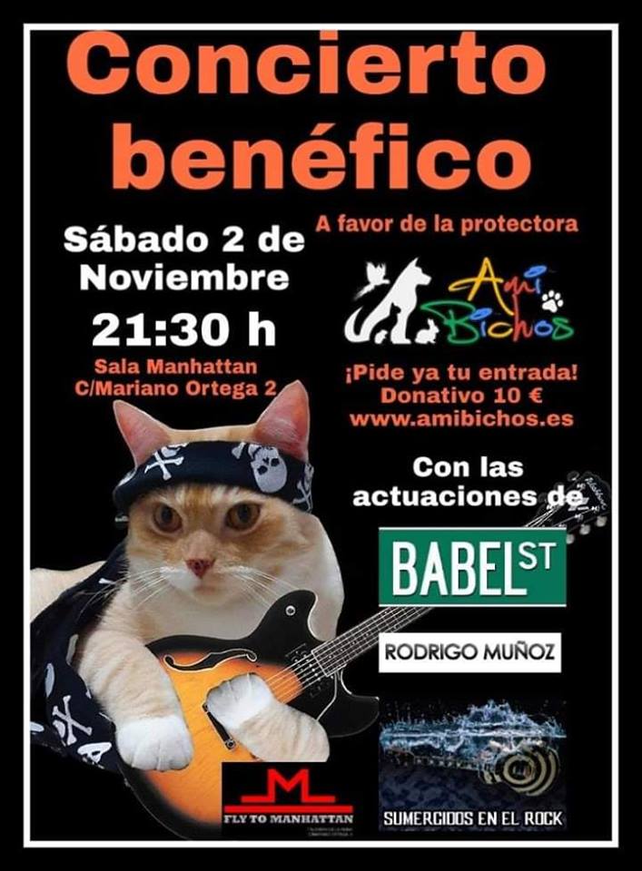 Apunten: sábado 2 de noviembre. Talavera de la Reina. La cita es un concierto solidario a favor de la protectora Amibichos, para ayudar a Jaimie, un precioso minino con tres patas.