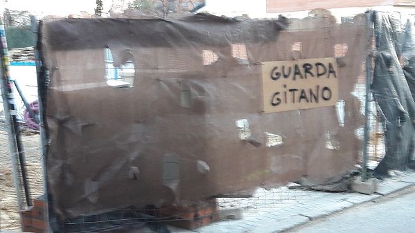 Construcción de pisos en un barrio madrileño. Los promotores y constructores están hartos de robos. Por eso han decidido adoptar medidas drásticas. Por ejemplo, la que aparece en la imagen.Por cierto, no queda claro si impresiona el hecho de que el guarda sea gitano o de que se trata de un aviso para el resto de la comunidad: entre bomberos nos pisamos la manguera.Hispanidadredaccion@hispanidad.com