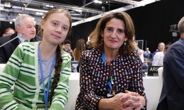Como si de la mayor de sus fans se tratara, Teresa Ribera buscaba el momento de inmortalizarse con Greta Thunberg. Parece que con el ajetreo de la Cumbre COP-25 y con la apretada agenda de la activista sueca -tanto o más que la de la propia ministra- el ansiado momento no llegaba nunca… Hasta que sus caminos se cruzaron, se hallaron sentadas juntas antes de que Greta interviniera en la Cumbre y, ¡chas!, se hizo la instantánea.